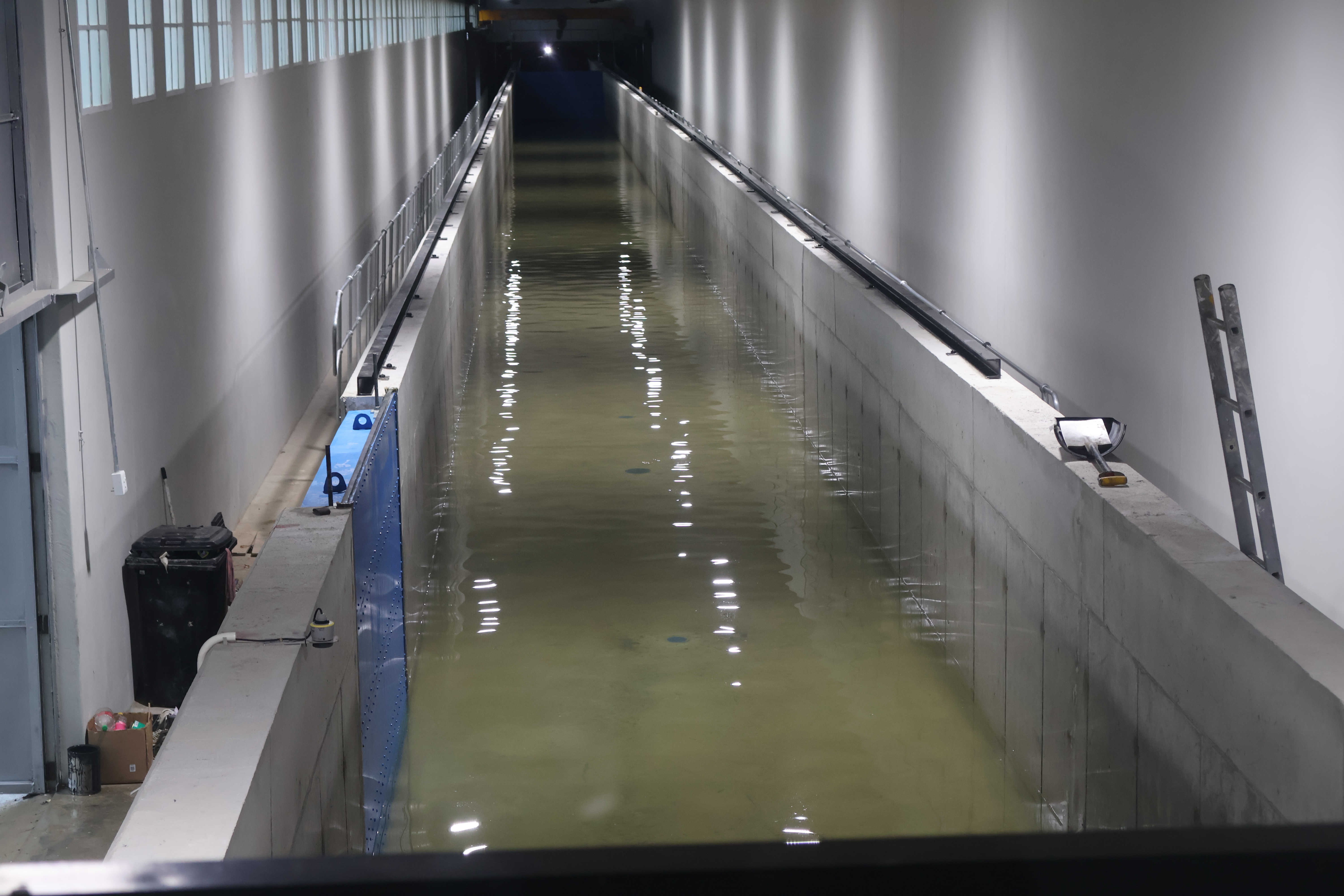The new flume is approximately 110 metres (m) in length, 3 m wide and 2 m high, making it ideal for large structures or studies requiring deep water depths. The new three-axial large flume wavemaker can generate wave heights up to 0.8 m at a water depth of 1.6 m, which will allow researchers to test marine designs with minimal scale effects. In the niche field of coastal engineering and physical model studies, larger scales (smaller test structures) introduce uncertainties, and this is why conducting physical model studies at smaller scales is significant.